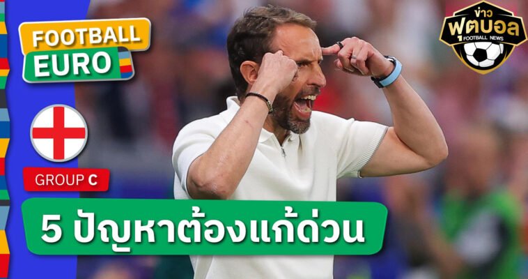 สำหรับพวกเขาถูกได้รับการยกย่องให้เป็นเต็งหนึ่งที่จะคว้าแชมป์ยูโรบนแผ่นดินเยอรมนี แต่ตอนนี้สถานการณ์ไม่ใช่แบบนั้นอีกต่อไปแล้ว และถ้า เซาธ์เกต ต้องการที่จะพาบ้านเกิดเมืองนอนคว้าแชมป์รายการนี้ให้ได้ เขาต้องรีบปรับแก้ปัญหา 5 เรื่องอย่างเร่งด่วน ไม่อย่างนั้นอย่าหวังจะประสบความสำเร็จได้เลย